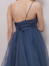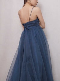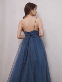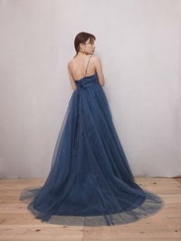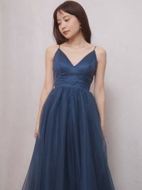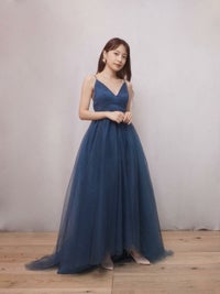 深いブルーが上品なカラードレス。