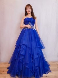 深いブルーのカラードレス。