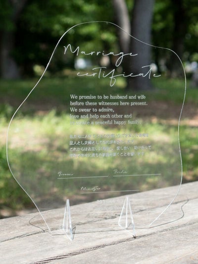 Bellwedy 3ミリ厚の文字が消えないアクリル結婚証明書 クラウド型