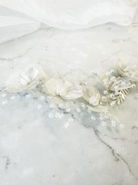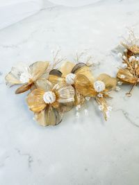透かしのあるプレートでできた花びらは、軽やかな着け心地で色々なヘアスタイルにお使いいただけます。