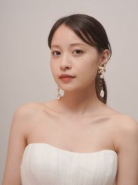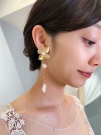 大ぶりのゴールドワイヤーにパールを散りばめ、個性的かつ華やかに仕上げています。