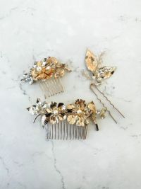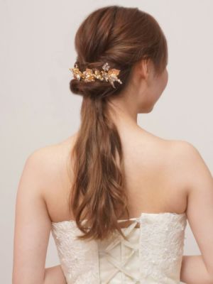 ゴールドフラワー&リーフモチーフのヘアコームとヘアピンセットです。