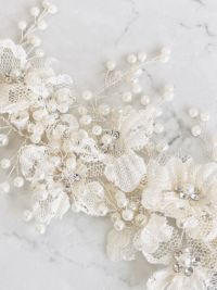 上品なアイボリーのレースをフラワーモチーフにカッティングし、