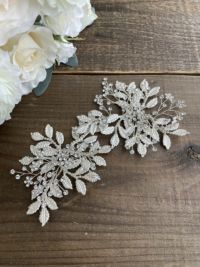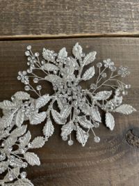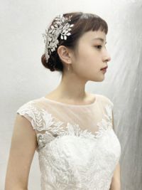 マット加工のリーフと、小枝のクリスタルビジューをバランスよく紡いだヘッドドレス。