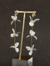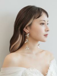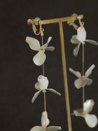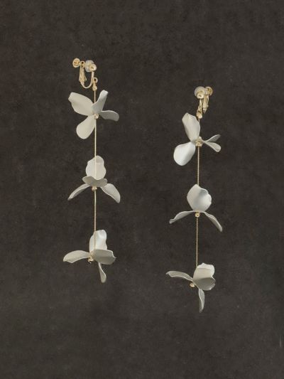 マットシルバーのお花と煌めくチェーンが揺れる華やかな耳飾り。