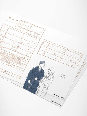 書き下ろしイラストを使ったオリジナルデザインの婚姻届。