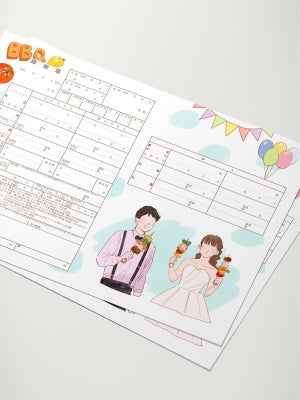 アウトドア好きのカップルにぴったりの、BBQシーンを描いたデザイン婚姻届。