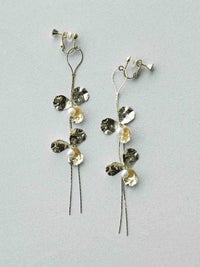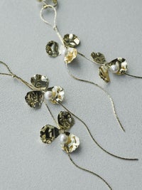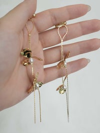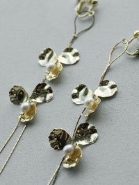 ゴールドのお花とまるい淡水パールを組み合わせたロングピアス・イヤリングです。