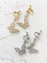 MoeBridal × PLACOLE&DRESSY 蝶々のイヤリング-ジルコニア【MO-COER-3】