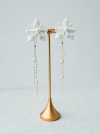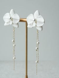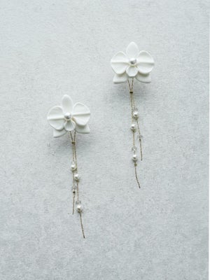 mumry × PLACOLE&DRESSY 胡蝶蘭と真珠のガラスチェーンイヤリング/ピアス 【MU-COER-30】