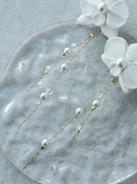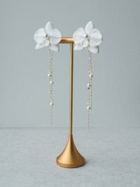 『胡蝶蘭と真珠のガラスチェーンイヤリング 』