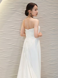 しっとりと高級感のある生地で、特有の美しいドレープが魅力のドレスは、