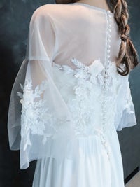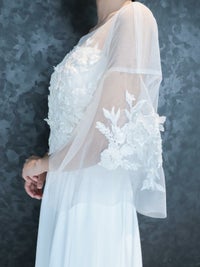 ボレロには立体的なフラワーモチーフのレースがあしらわれています。