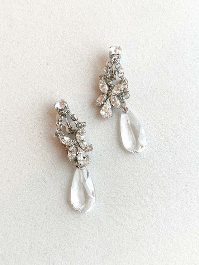 輝きと透明感を兼ね備えたイヤアクセサリー。 透明度の高い、大きなしずく型のクリスタルは お肌をより明るく綺麗に魅せてくれます。