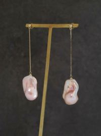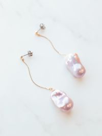 「オイスターパール」と呼ばれる、大粒のバロックパールをつかったイヤアクセサリー。