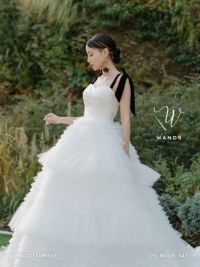 ラッフルとティアードの リズム感のある切り替えデザインが印象的な ボリューム感たっぷりのチュールドレス。 アクセントのベロアリボンは、付けはずし可能な2wayです。