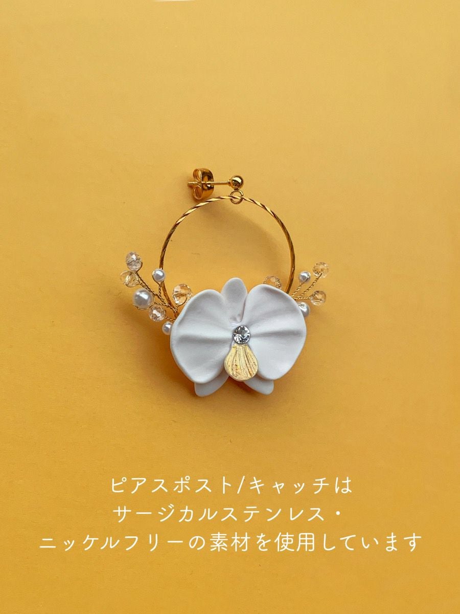 他の画像を見る mumry × PLACOLE&DRESSY 胡蝶蘭と真珠のガラスチェーンイヤリング/ピアス 【MU-COER-30】 ¥ 9,000 税込 ¥ ask カートに入れる お気に入りに登録する