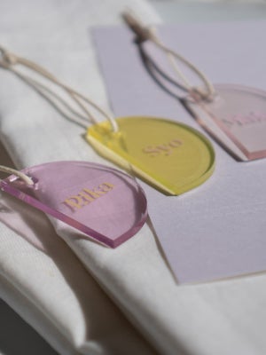 結婚式でお使いいただける席札ですが、式が終わったあともキーホルダーやネームプレート、ネームタグとしても長くお使いいただけます。