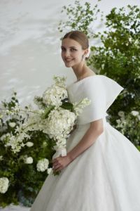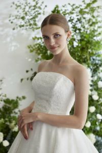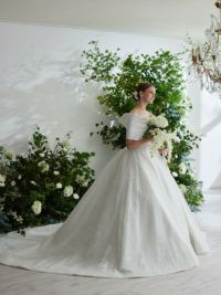 ウェディングドレス全体に繊細なラメチュールを使用し