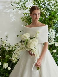 取り外しができる花びらをイメージしたロングケープが優美で、 女性の心をくすぐる 愛らしく大人エレガントなドレスです。