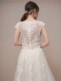 ボタニカルモチーフのレースが可愛らしいAラインドレス。