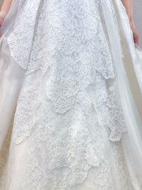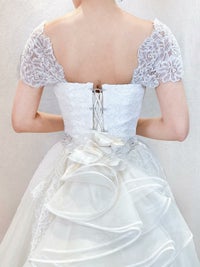 オフホワイトの上品なレース素材のドレス。