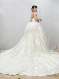 トレーンも長さがあり、正面と同じく小花が施されています。