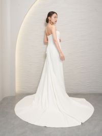 トレーンがきれいに広がる、美しいバックスタイルもポイントです。