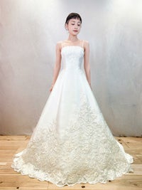 ローズがモチーフのカットレースが美しいAラインドレス。