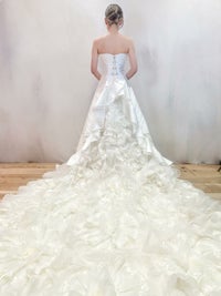 フリルのロングトレーンなど、付属品も多く、