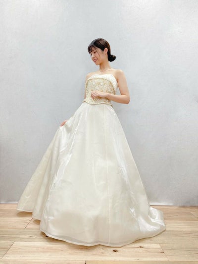 スカートはオーガンジー独特の柔らかな光沢感が目立ちます。