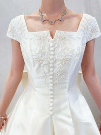 フレンチスリーブのクラシカルで上品なウェディングドレス。