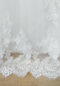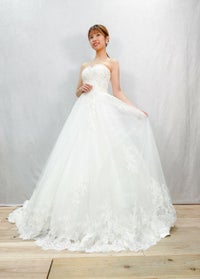 裾の大ぶりのレースが映え、ゴージャスな印象に。