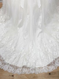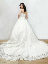 バックスタイルは大ぶりのレースが大胆に広がり写真映えも。
