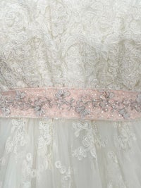 ピンクのサッシュベルトがポイントになっています。