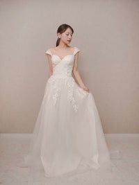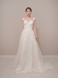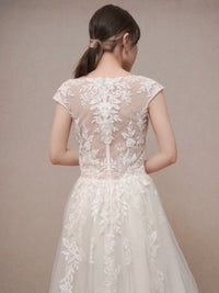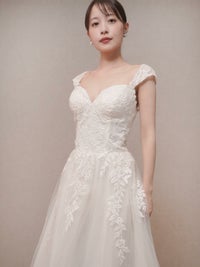 ボタニカルモチーフのレースが可愛らしいAラインドレス。