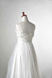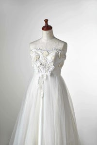 立体的で華やかな刺繍がトップスに施されたビスチェスタイルの一着です。