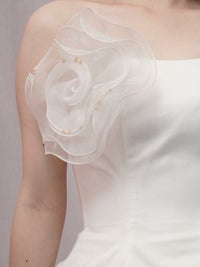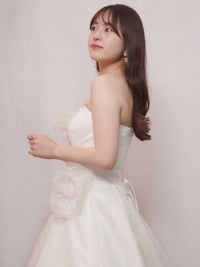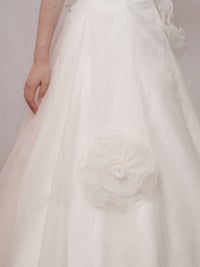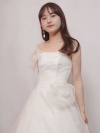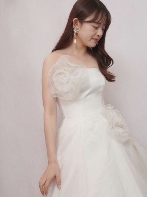 胸元やウエストラインにはオーガンジー素材のフラワーモチーフがついており、