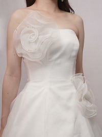 つや感のあるオーガンジーが柔らかく広がる上品なデザイン。