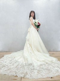ドレスバックスタイルは華やかなレースのロングトレーン。