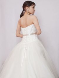 バックスタイルは何枚も重なり合ったチュールスカートが