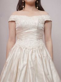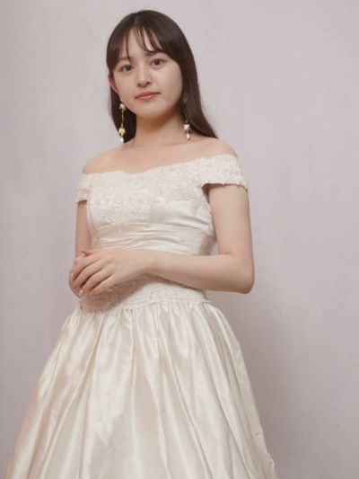 ショルダー部分までたっぷりの刺繍とビーズが施され、