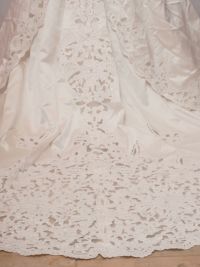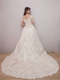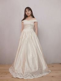 トレーンは長めで、裾までたっぷりと入ったカットレースが上品。