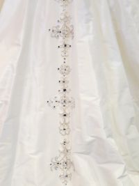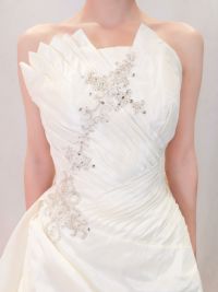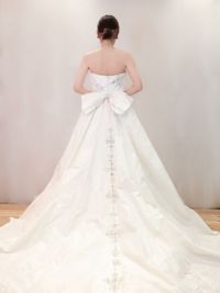 胸元やトレーン部分のビーズ刺繍が上品なAラインドレス