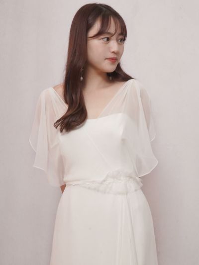 胸元や背中はすっきりと開き、抜け感のある印象に。
