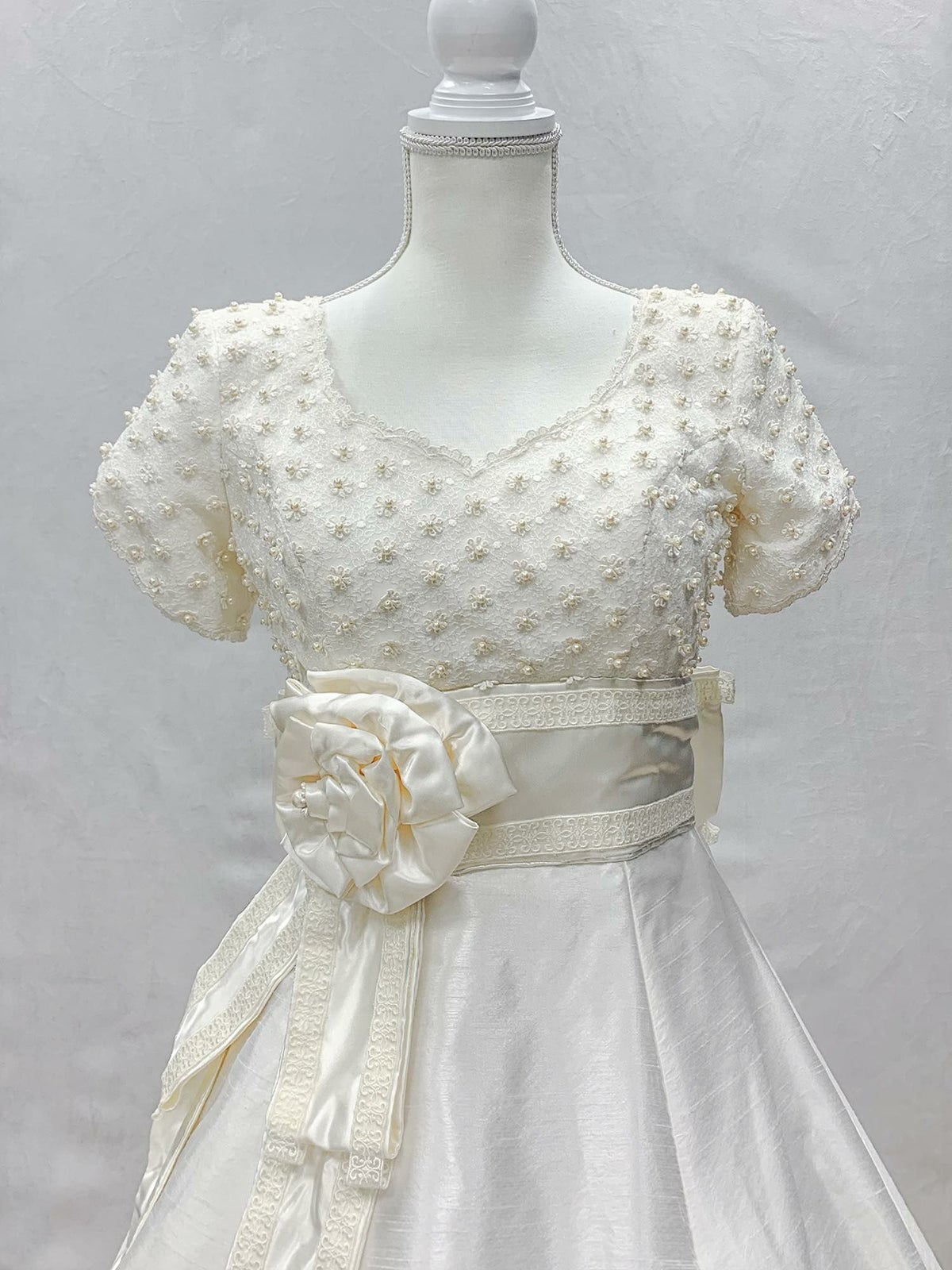 例えば腰にリボンやお花などワンポイントが付いたドレスの場合。