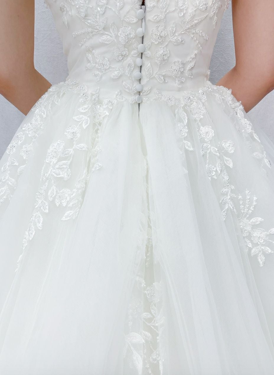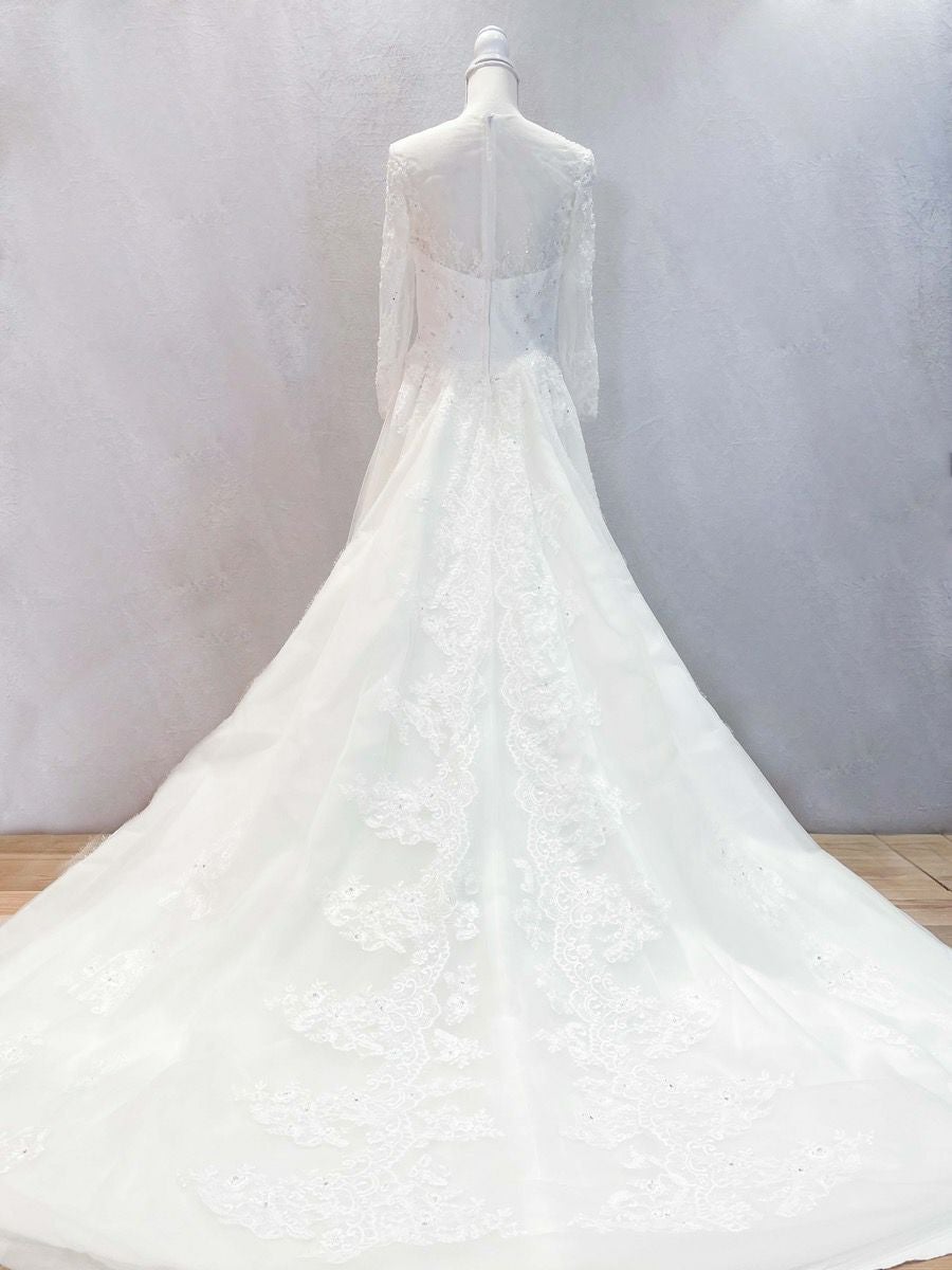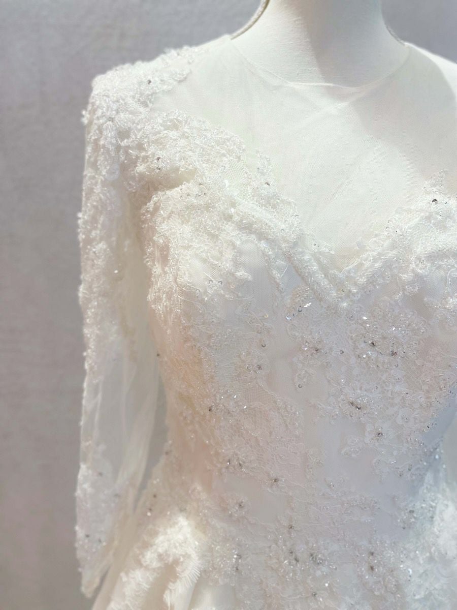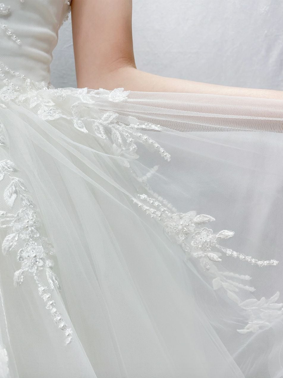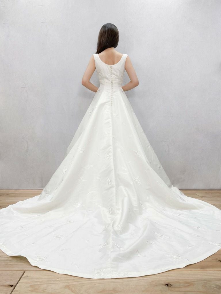 Aの形に広がったシルエットのウェディングドレス。