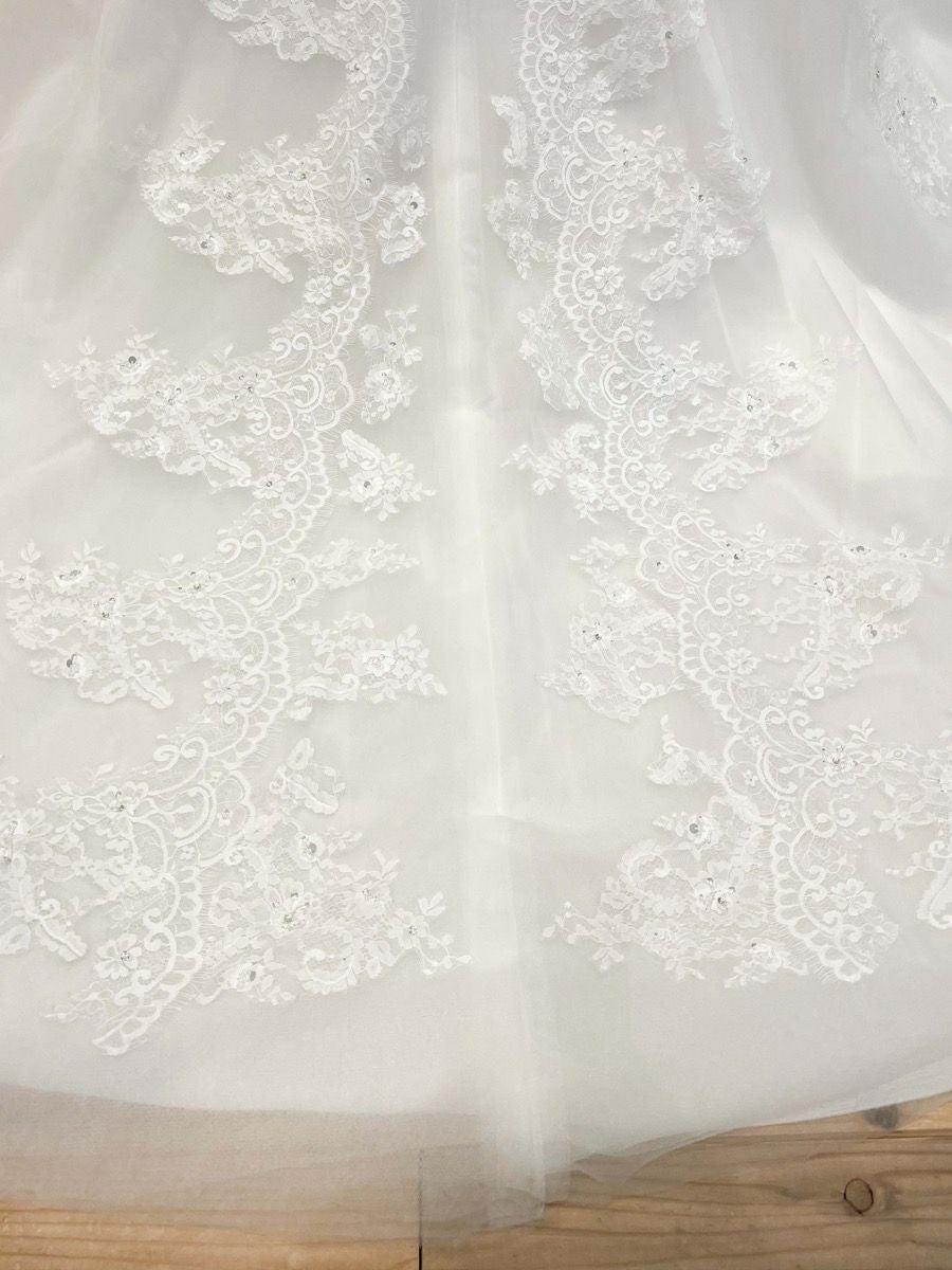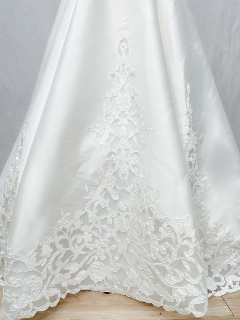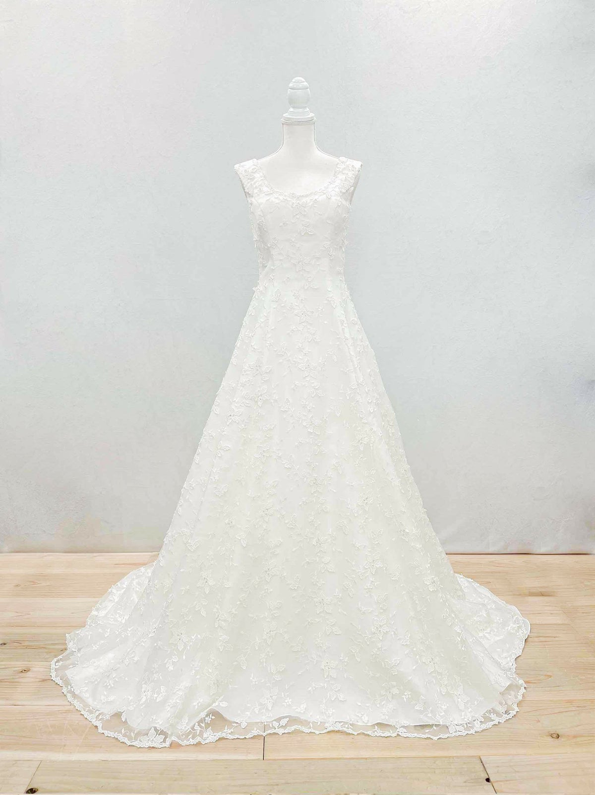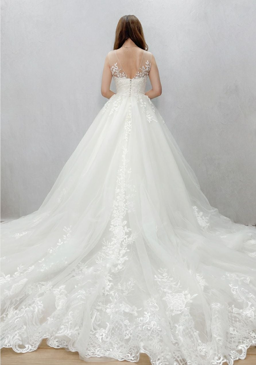 Aの形に広がったシルエットのウェディングドレス。