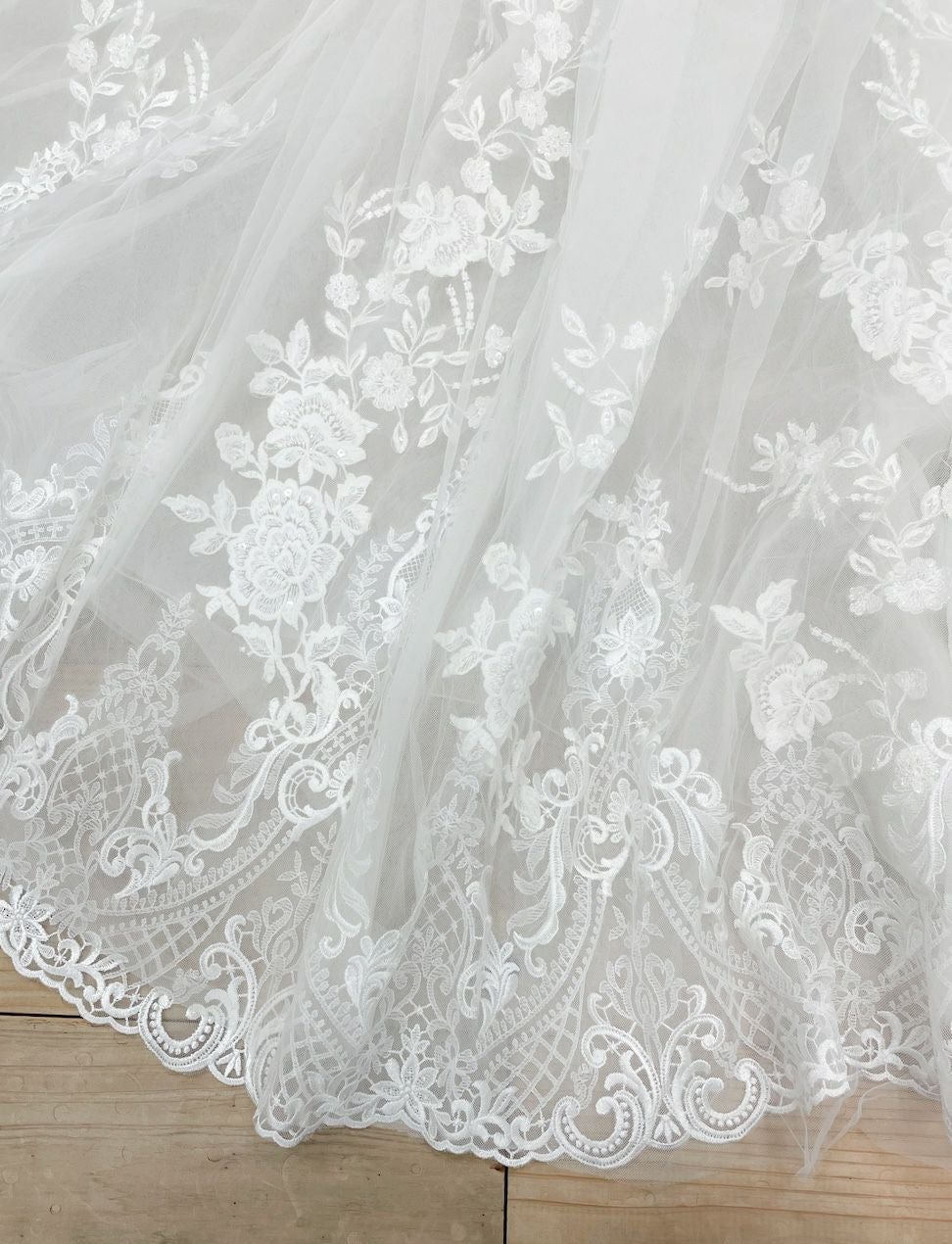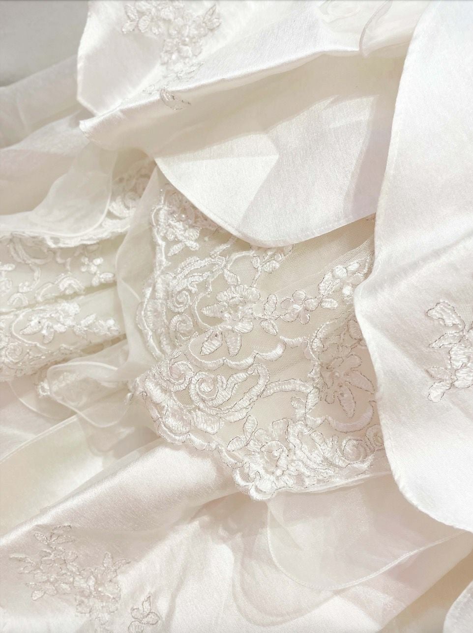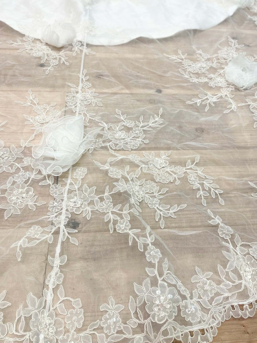 レース刺繍を施したベールを合わせたりするのもおすすめです。