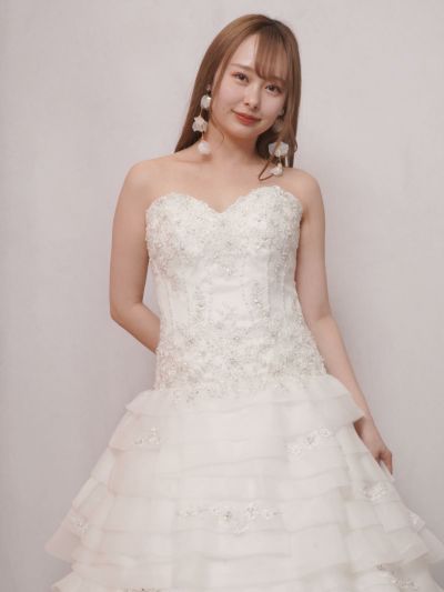 ビスチェタイプなのでデコルテから腕にかけてのラインも美しく。